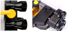 On the Speed Lock cutting head, each line on the knob represents .0025". There is a stationary reference line for you to use when setting the cut depth. On the 12XX series cutting head, each line on the knob represents .001".